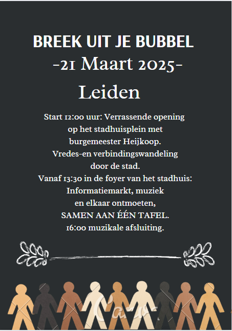 Iedereen is welkom om deel te nemen en bij te dragen aan een samenleving waarin luisteren en verbinden centraal staan.