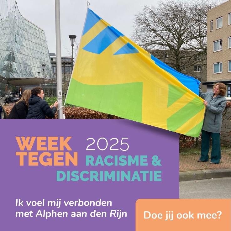 Tijdens de Week tegen Racisme en Discriminatie loopt er een postercampagne in Alphen aan den Rijn, Boskoop, Benthuizen, Hazerswoude-Dorp en Aarlanderveen. Deze campagne met als thema ‘Ik voel mij verbonden met Alphen aan den Rijn‘ informeert inwoners over de Week en roept hen op om ook bij dragen aan een veilige, inclusieve gemeente. Met beelden en teksten benadrukken de posters dat discriminatie op meerdere gronden verboden is en dat er actief gewerkt wordt aan een samenleving waarin iedereen zich veilig voelt. De postercampagne is onderdeel van een breed scala aan programmaonderdelen in Alphen aan den Rijn, die verderop in dit artikel verder worden uitgelegd.